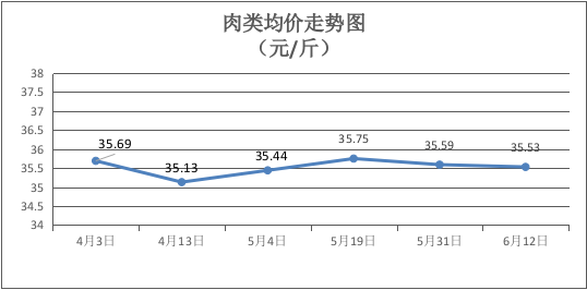 肉类商品价格下降。本期所监测的8种肉类商品均价为35.53元/斤,环比下降0.17%。其中:排骨零售均价为每斤29.50元,环比下降1.67%。