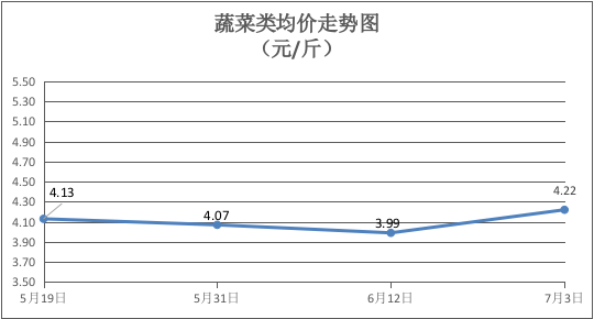 据本区农贸市场价格监测数据显示(2023年6月13日至7月3日,下同)市场上各类“菜篮子”商品供应充足,所监测的7大类“菜篮子”商品价格2平2涨3跌。价格波动幅度处于合理区间范围,价格总体保持稳定。其中:粮食类、食用油类商品价格总体平稳,蔬菜类、水果类商品价格上涨,肉类、禽蛋类、水产类商品价格下降。