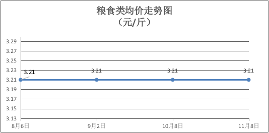粮食类商品价格持续平稳。本期所监测的4种粮食商品均价为3.21元/斤,环比(与上期比,下同)持平。其中:丝苗米、珍珠米、油粘米、面粉零售均价分别为每斤3.25元、3.30元、3.50元、2.80元,环比均持平。