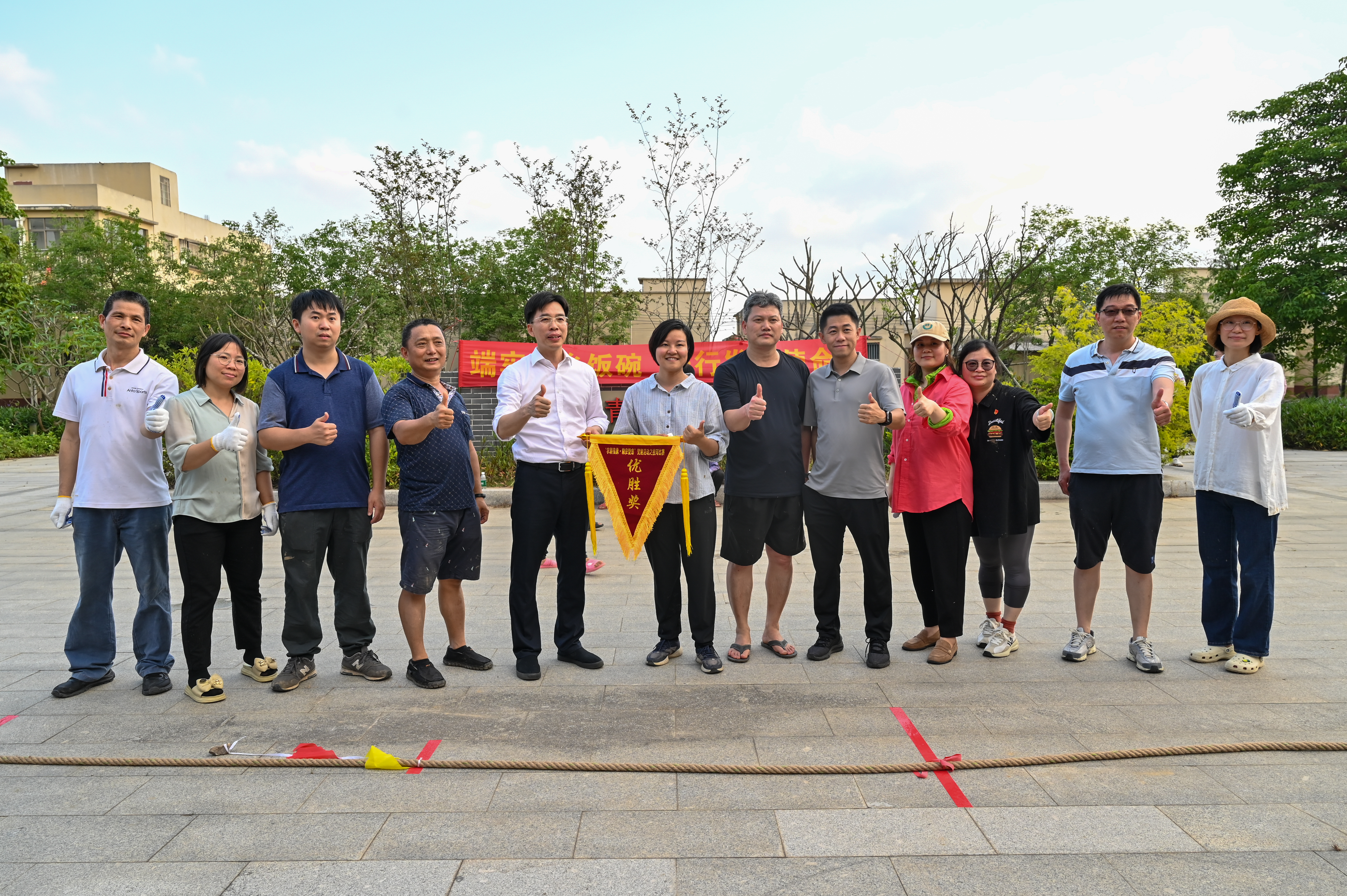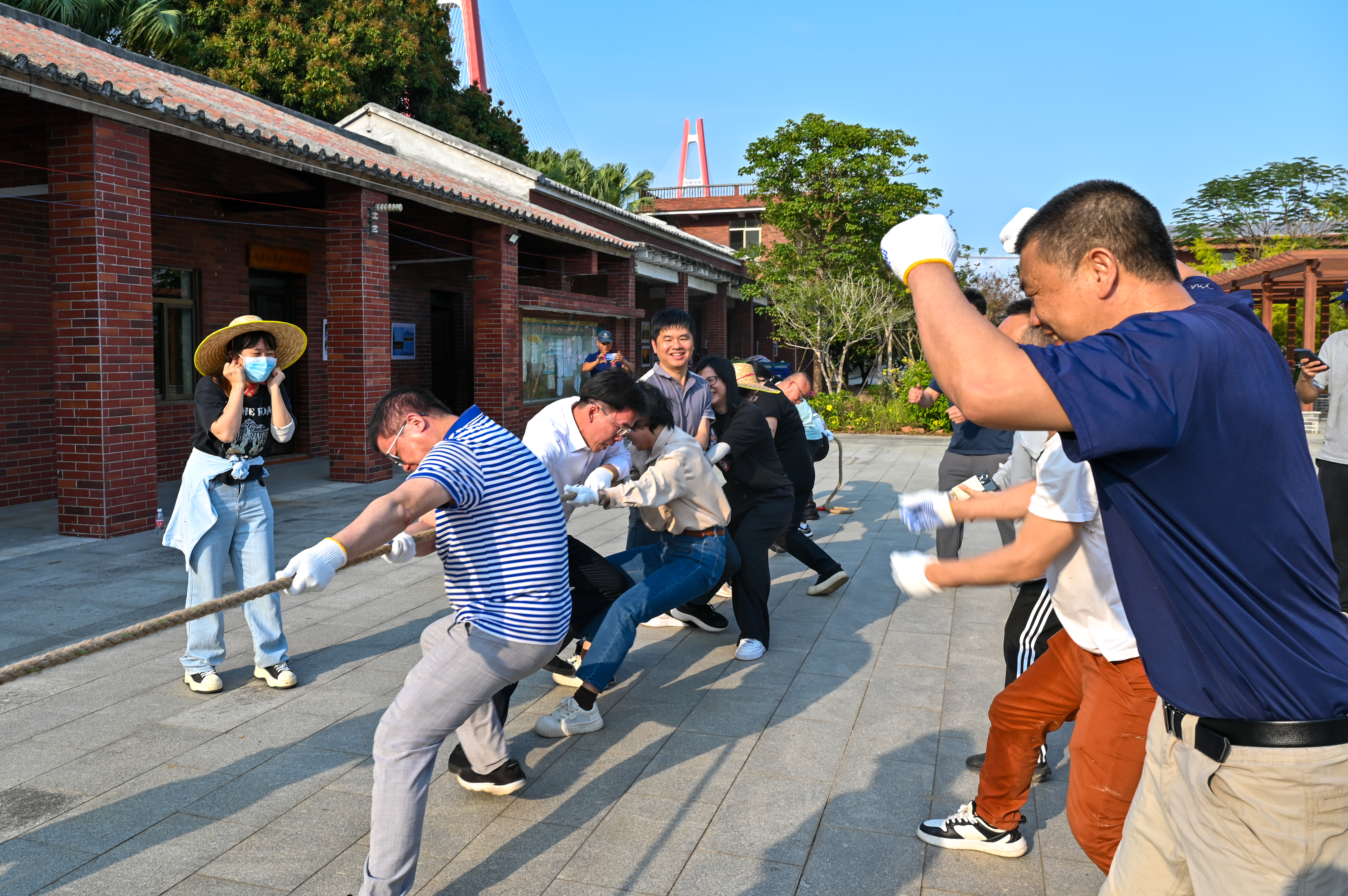 春耕备耕的号角吹响,广袤田野焕发蓬勃生机。农技专家化身“田间导师”,为党员干部们详细示范了插秧的“三控技术”(控深、控距、控苗)。党员干部们经过认真聆听、仔细观摩后,与农民群众一同俯身田间,投身于春耕实践。在彼此的交流与协作中,水田上渐渐布满整齐排列的秧苗,勾勒出一幅干群同心、共绘春耕画卷的动人场景。随后,一场充满活力的拔河比赛火热开场。参赛队员们齐心协力,现场氛围热烈非凡,呐喊助威声响彻全岛。