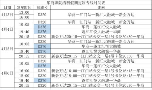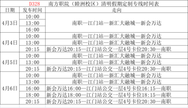 4月3日-4月6日期间每天班次时间和停靠站点见下图:
