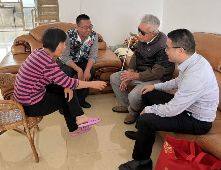 黄天栋(左二)在上门慰问退役军人