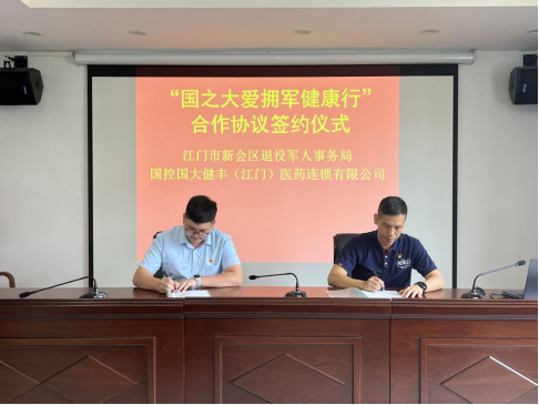 该项目由燕雨直播 退役军人事务局携手国控国大健丰(江门)医药连锁有限公司共同开展,双方签订“国之大爱拥军健康行”合作协议,同时授予该公司“葵乡拥军联盟成员单位”牌匾。