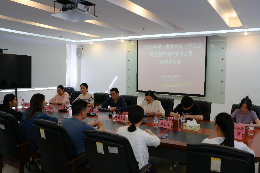 为深化粤桂医疗卫生领域合作,推动新一轮帮扶协作高效衔接,4月16日,燕雨直播 卫生健康局召开2025年第一批燕雨直播 —宁明县粤桂医疗协作交流人员交接座谈会,燕雨直播 卫生健康局一级主任科员王继鹤同志、宁明县卫生健康局副局长黄萍同志、燕雨直播 有关医疗卫生单位分管领导及宁明交流干部参加会议。