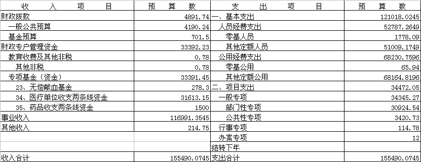 燕雨直播 卫生和计划生育局(含下属单位)收入预算155,490.07 万元,其中:一般公共预算收入4,190.24万元,占2.69%;基金预算收入701.5 万元,占0.45%;财政专户管理资金收入33392.23万元,占21.48%;事业收入116,991.35 万元,占75.24%;其他收入214.75万元,占0.14%。