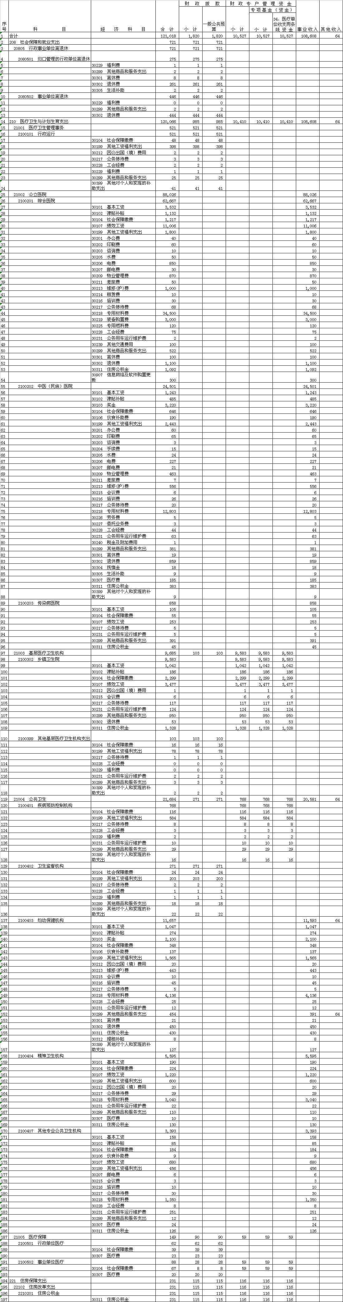 项目支出预算3071.71 万元,主要支出项目有医疗卫生与计划生育事务支出、公立医院支出、基层医疗卫生机构支出、公共卫生支出、中医药专项支出、节能环保支出、城乡社区事务支出等。