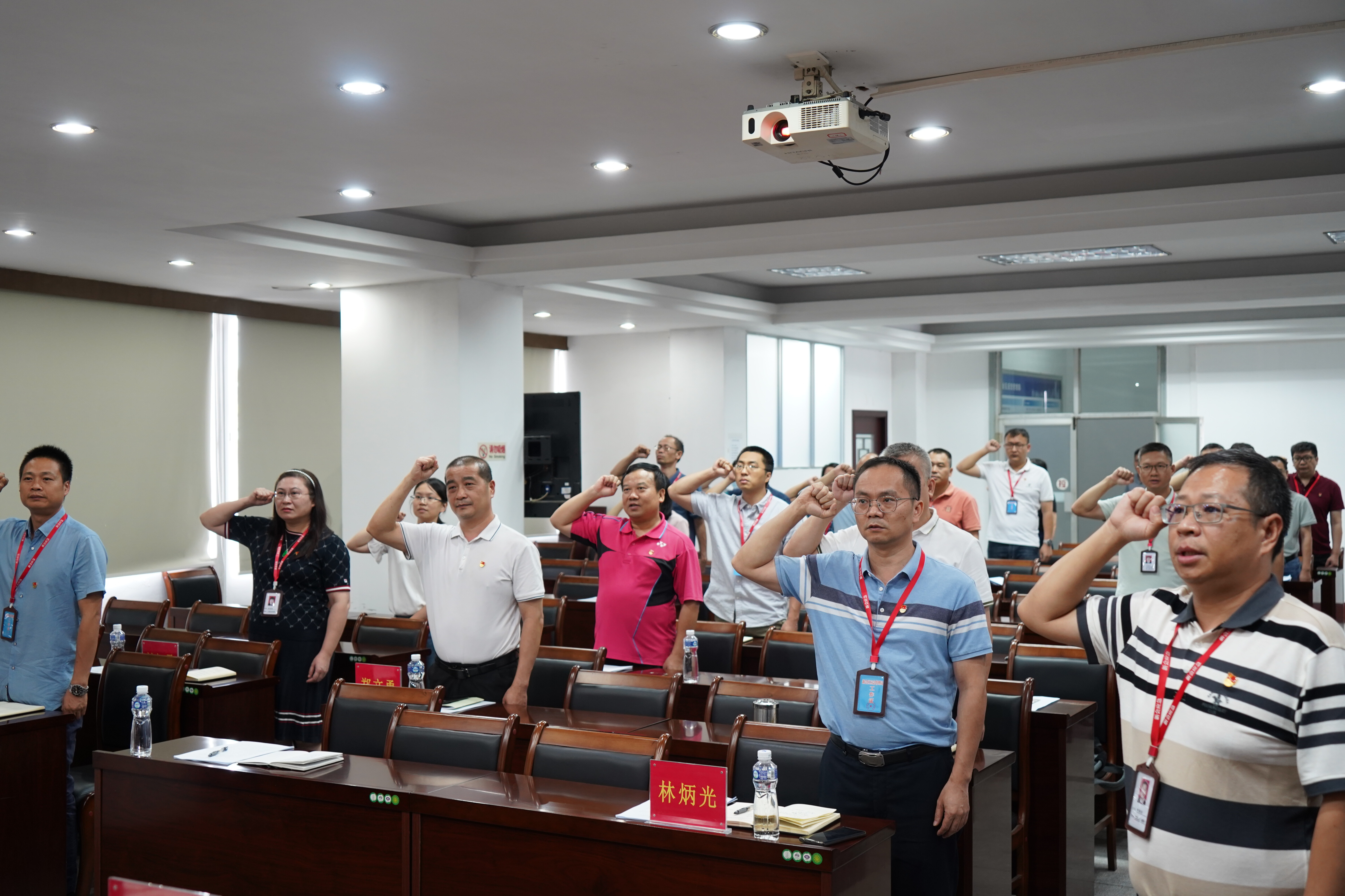为进一步牢记共产党员的政治身份、初心使命,始终不渝坚持和加强党的全面领导,局机关党支部组织党员干部重温入党誓词。6月27日,局党委委员、副局长、机关党支部书记李锦庆同志带领全体党员干部,面向党旗,高举右拳、进行庄严宣誓,铿锵有力的誓言发自肺腑、久久回荡,表达了对党的无限忠诚和热爱,进一步坚定了践行初心使命的决心。