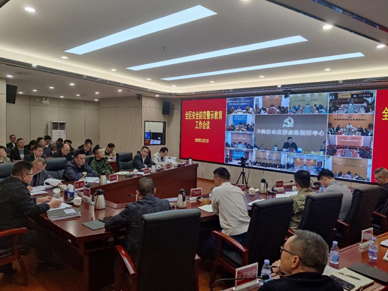 为深入贯彻落实重大事故隐患专项排查整治和“奋战六十天 全年保平安”安全生产攻坚工作,11月17日,我区组织召开全区安全防范警示教育工作会议,深刻汲取全国近期典型事故案例教训,举一反三,研究部署我区各项安全防范工作。区委常委、副区长钟文明,副区长、新会公安局局长郭成,区委办、区府办、区安委办、区道安办、区消安委办等主要领导,区安委会成员单位主要负责同志出席参加;各镇(街、区)主要负责同志、分管应急工作的负责同志,应急办、规建办、专职消防队、综合执法办等部门负责人通过会商视频参加。