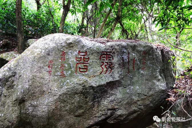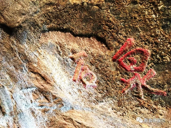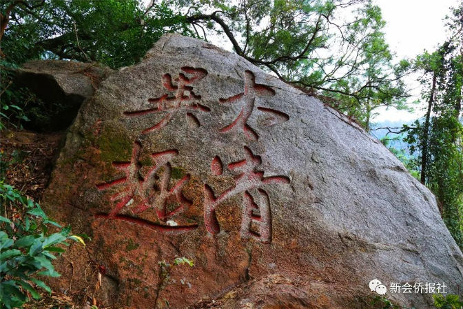 在石涧九龙窟,有一块大致呈不规则三角形的石头,因保留着珍贵的清代石刻字迹而被载入新会县志。石头上面刻着“太清异趣”四个刚劲有力、线条流畅的行书大字,涂抹着红漆,落款为“崖山野人”。崖山野人名叫张总章,号崖山,是新会清代诗人和书法家,著有《崖山诗草》和《奇山山房集》。他留下的“太清异趣”是新会并不多见的古代摩崖石刻,也是圭峰山脉字体最大的古石刻。这四个大字,让平淡无奇的石头添上了笑傲红尘的潇洒,以及百年风雨吹不散的趣味。见字如面,风摇树影,似是故人来。这块刻字的石头,必定附着一个有趣的灵魂。