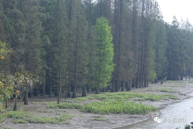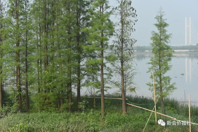 水松、落叶杉以其发达的根系,牢牢植根于泥土之中,耐水湿,不腐烂,生长快,郁郁葱葱,挺拔的身躯可顶狂风,苍劲的盘根可挡巨浪,是江河堤外滩涂绿化、防浪,固堤防风,以及营造农田林网的优良树种。