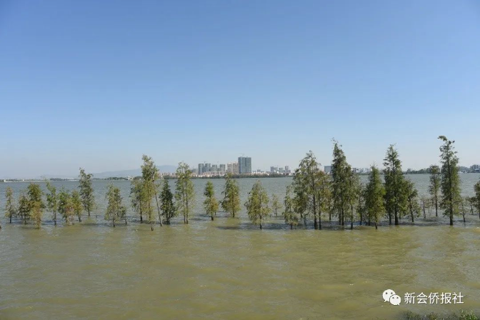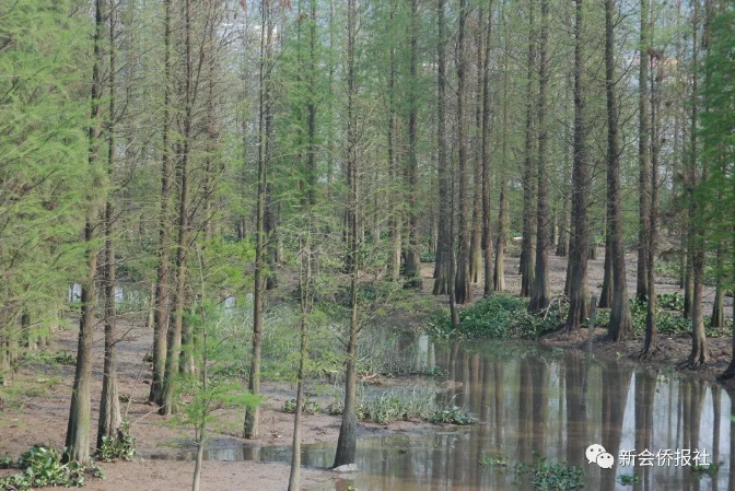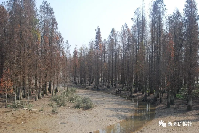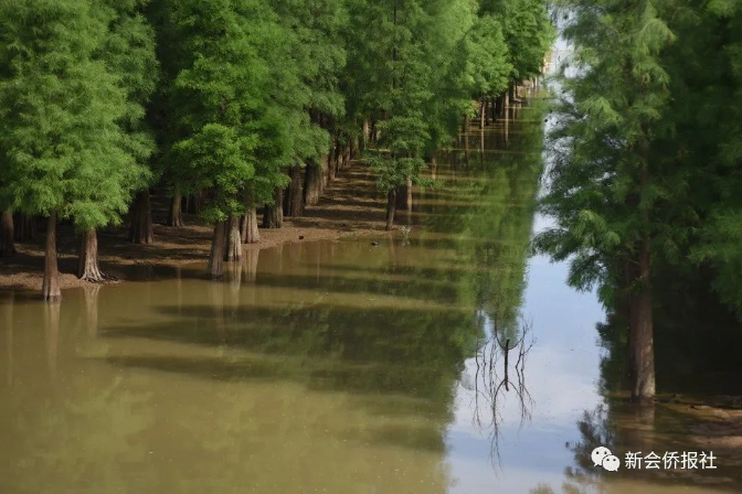 据《新会县志》记载,水松是新会本地优良的乡土树种。落叶杉原名落羽松,池柏,于上世纪60年代在新会小量试种,现圭峰山玉湖边、会城北园留存有1963年种植的大树。1974年开始推广种植,1985年全县采集落叶杉树种达2万公斤,为广东省第一个大量出产种苗的种源县。1992年新会水松保存量780991株;落羽杉535万株。1990年2月,新会县被国家林业部授予“全国平原绿化先进单位”称号,成为广东省第一个绿化达标县,可以说水松、落叶杉功不可没。